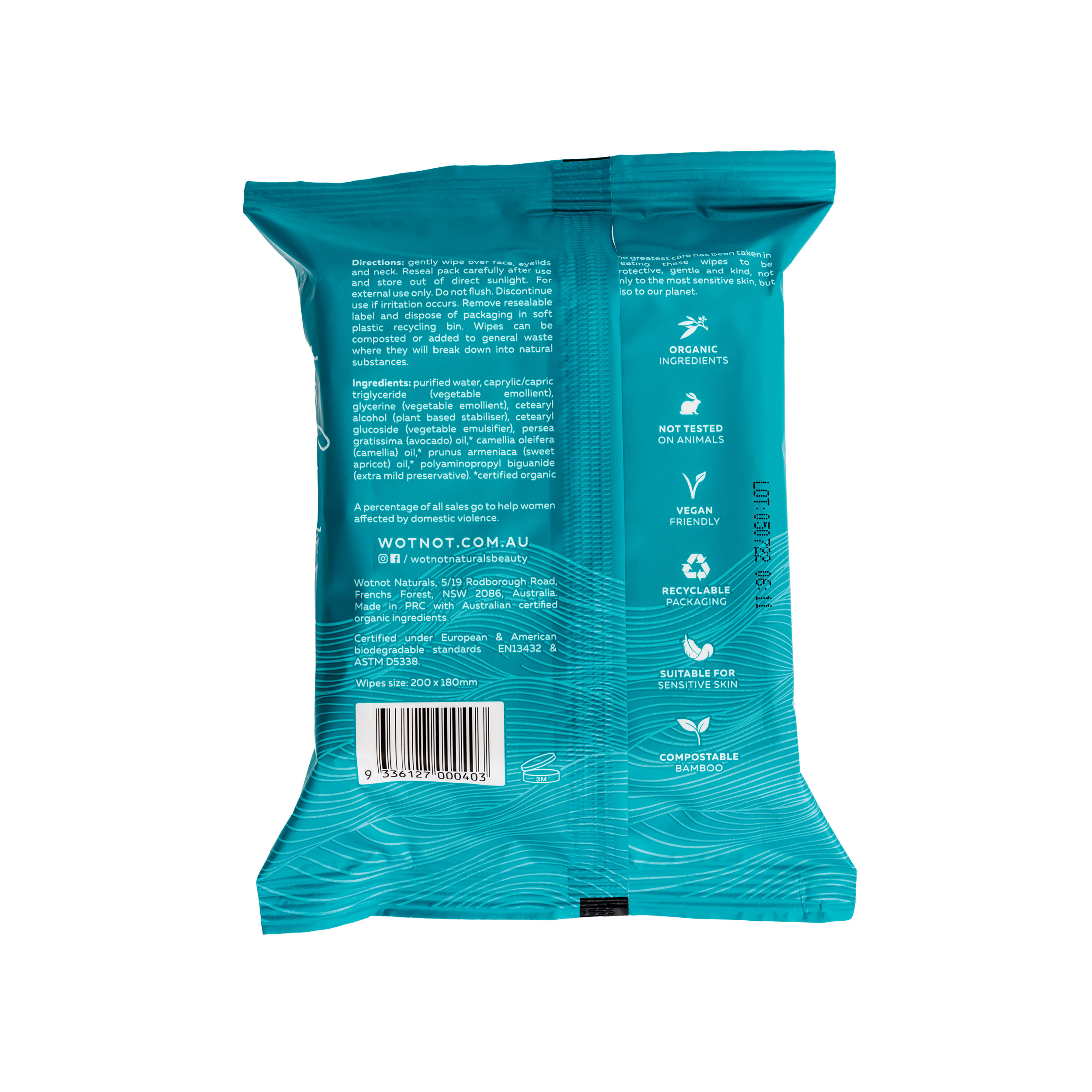 These face wipes are enriched with certified organic oils: avocado, camellia and sweet apricot, each chosen for their nourishing and antioxidant properties. The wipes are free from alcohol, artificial perfumes, parabens and petrochemicals. They are crafted from 100% natural, biodegradable and compostable fibres.