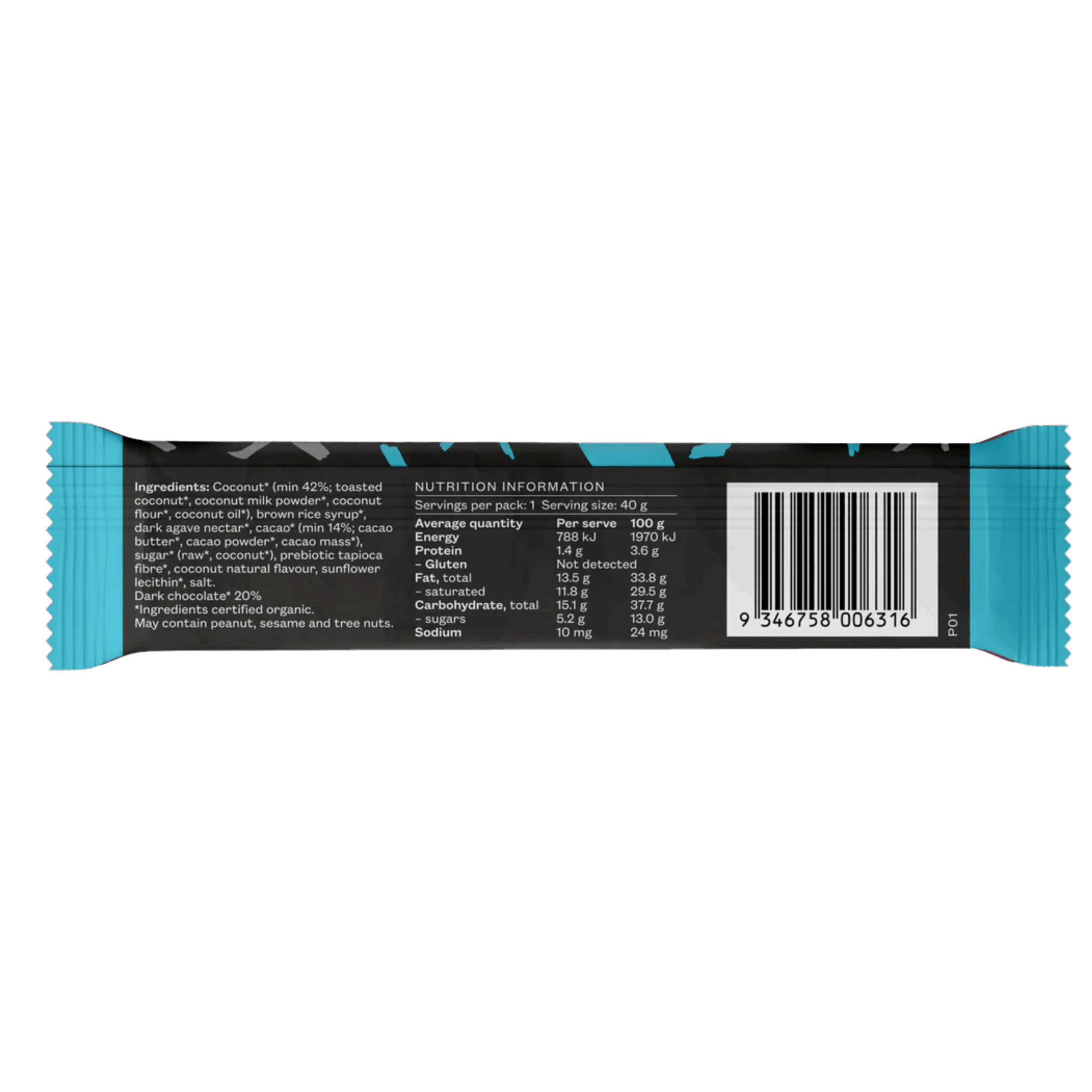 Savour the rich flavour of organic toasted coconut and dark chocolate in this vegan, gluten-free snack bar.