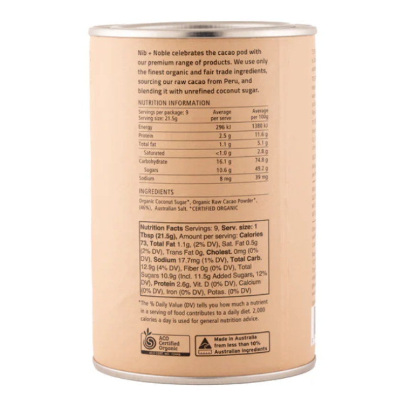 Nib and Noble’s Original Drinking Chocolate proudly carries ACO (Australian Certified Organic) certification. This ensures every ingredient has been grown and processed without the use of harmful pesticides, synthetic chemicals, or GMOs. It’s a better choice for both your health and the environment.