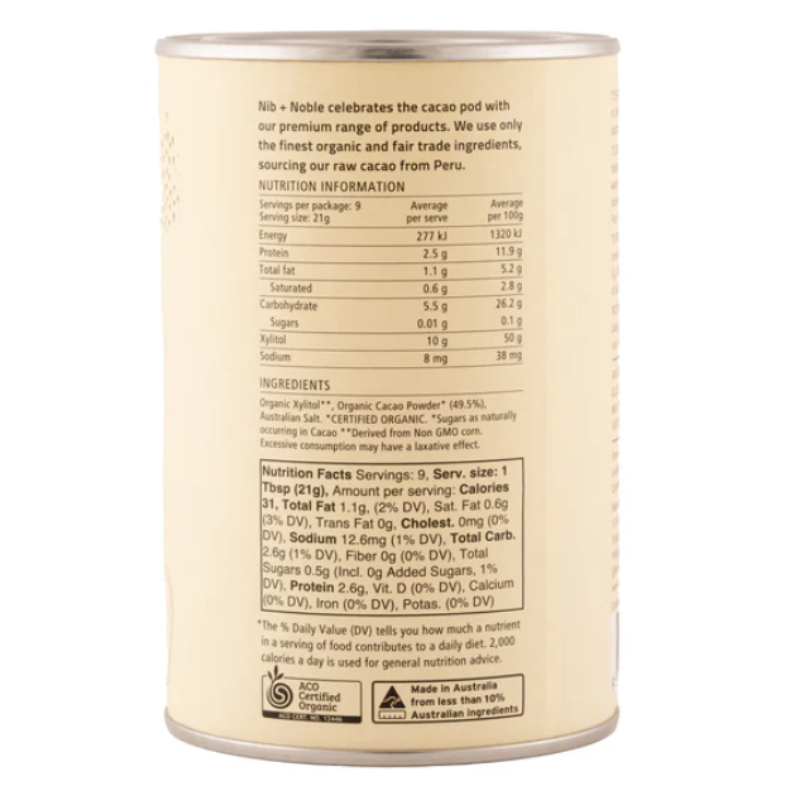 Organic Drinking Chocolate – Sugar Free 200g (Nib+Noble)