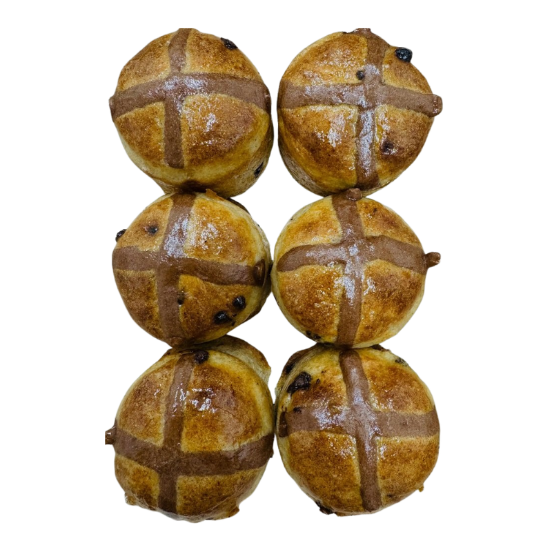 Furthermore, vegan chocolate chips and cocoa powder add a smooth chocolate flavour. Therefore, these buns offer a delicious twist on a classic Easter favourite. Importantly, the buns are dispatched frozen to preserve freshness and quality during transport.