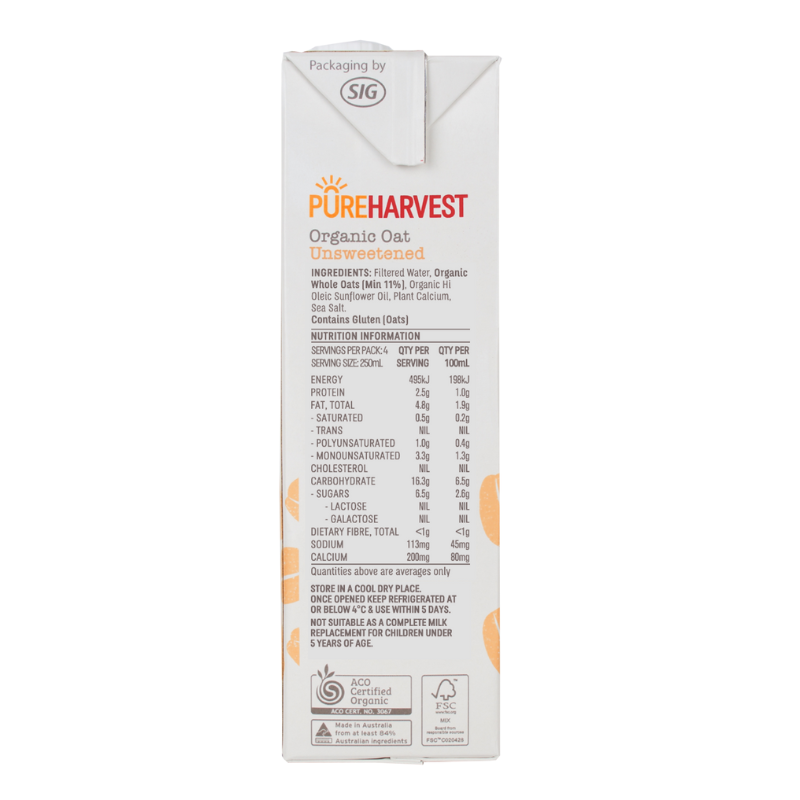 Experience the wholesome goodness of PureHarvest Organic Unsweetened Oat Milk 1L, a premium plant-based beverage crafted from 15% whole organic oats. Free from added sugars, artificial sweeteners, and preservatives, this oat milk offers a smooth, creamy texture and a mild, naturally sweet flavor, making it an excellent dairy alternative for various dietary preferences.