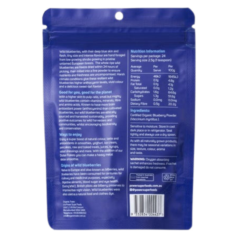 When you want an antioxidant-rich boost in your diet, reach for Power Super Foods Organic Wild Blueberry Powder. This pure, freeze-dried bilberry powder carries the concentrated benefits of wild blueberries, offering potent nutrition, vibrant colour, and natural flavour without any added fillers or sugars.